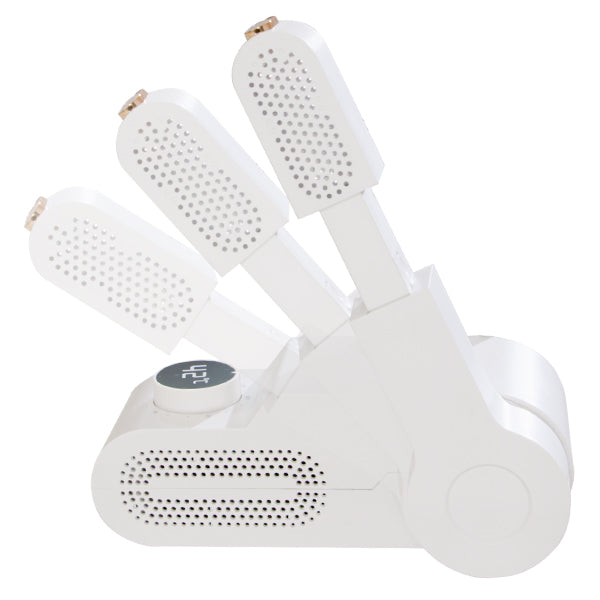 Le système combiné de chaleur et de désinfection UV permet à la fois un séchage efficace et un nettoyage hygiénique. Il suffit de placer les chaussures, d'allumer l'appareil et le reste se fait automatiquement.