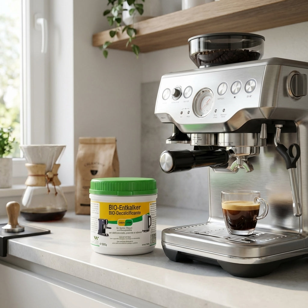 Bio-Entkalker ist ein lebensmittelechtes Granulat zum Entkalken von Kaffee- und Espressomaschinen, Heisswassergeräte, Boiler und Verdunster, Wasch- und Geschirrspülmaschine, Toilette und Urinale sowie allen Oberflächen, geruchsneutral, biologisch abbaubar. Einfach dosierbar und unbegrenzt haltbar.